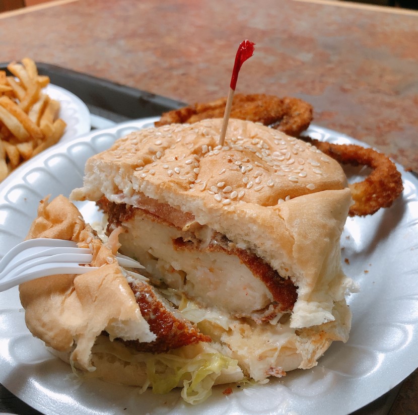 우황 새우 버거는 도스버거의 대표 메뉴 중 하나입니다. 우황 새우 버거는 맛있는 햄버거 대회에서 우승 경력이 있는 버거입니다. 매콤한 타르타르소스와 두툼한 새우 패티로 만들어져 있습니다.