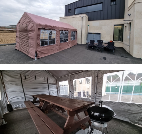 건물 뒤쪽에 바베큐장이 따로 있습니다. 바람막이가 다 쳐져 있어서 겨울에도 사용하 실 수 있도록 되어 있더라고요~ 저희는 아기가 있어서 실내 테라스에서 이용했지만.... 월래 펜션 고기 파티 감성은 숯에 바베큐장 아니겠습니까? 혹시나 바베큐장을 이용하시는 분들은 숯은 개인이 챙겨야한다는 점!! 잊지마세요~