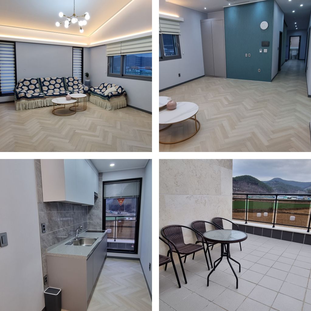 총방이 5개 화장실 4개 거실 2개 싱크대 2개 테라스 2개가 있는 펜션이었어요. 친구들끼리 오기에 너무 좋고, 여름에는 수영장까지 해서 아이가 있는 가족끼리 오기에도 너무 좋은 거 같아요~