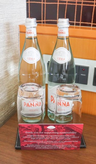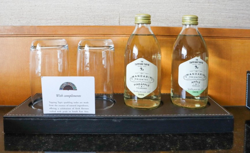 웰컴 드링크가 준비되어 있었습니다. 고급스러운 병에 담겨 있어서 처음에는 공짜인 줄 몰랐습니다. 하지만 공짜이니 걱정 말고 드셔도 됩니다. 파인애플과 사과 맛 주스입니다.