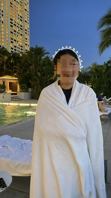 수영장에서 바라보는 노을 이쁩니다. 비치타월도 수영장에 있으니 룸에서 수건 가지고 오실 필요 없습니다.
